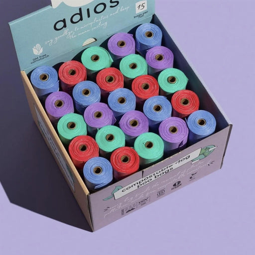 View full detailsDescription Discover a sustainable way to manage pet waste with Adios Plastic Compostable Poop Bags. Made from non-GMO cornstarch, these bags are ...